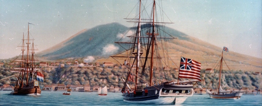 De “First Salute” verwijst naar een historische gebeurtenis op 16 november 1776, toen het Nederlandse eiland Sint Eustatius als eerste ter wereld de onafhankelijkheid van de Verenigde Staten erkende. Vanaf Fort Oranje werd het Amerikaanse schip Andrew Doria met een kanonsalvo begroet — een symbolische groet die geldt als de eerste officiële erkenning van de Verenigde Staten door Nederland.